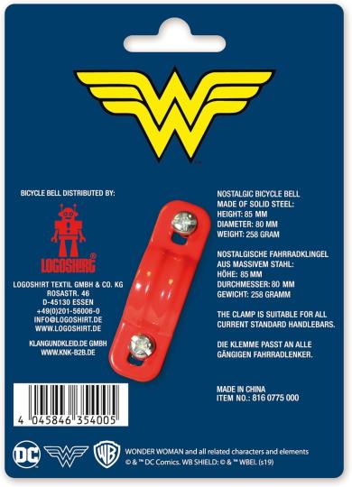 Logoshirt - DC Wonder Woman - Retro Fahrradklingel Groß - aus massivem Stahl - rot - Lizenziertes Original Design